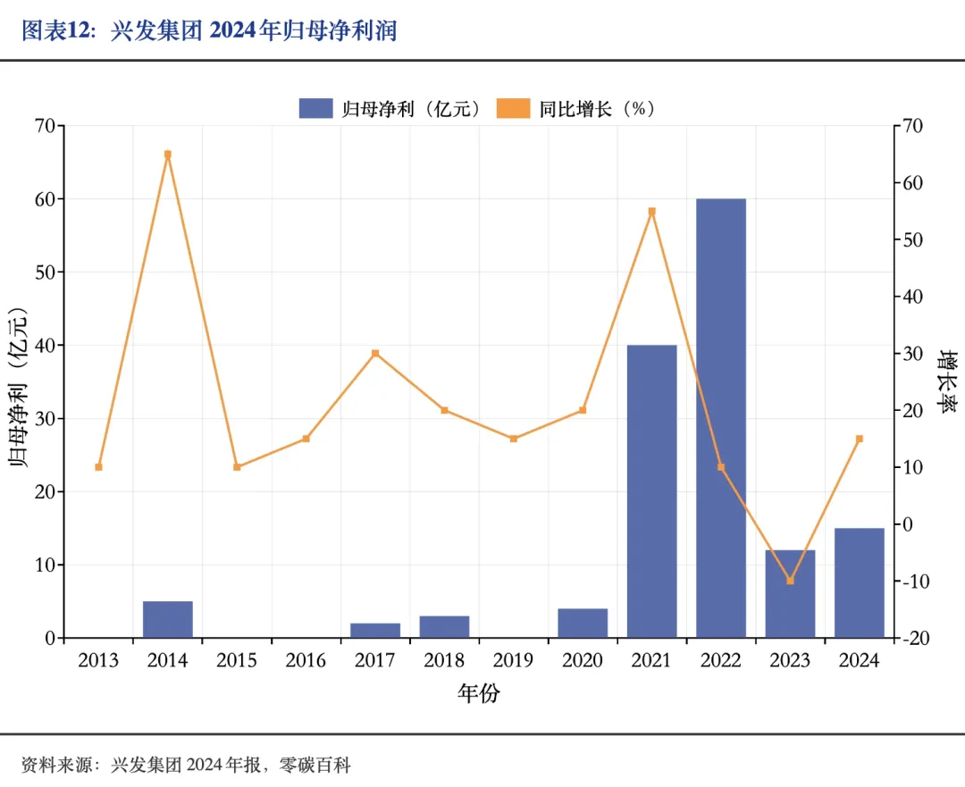 2025年4月1日,兴发集团发布2024年年度报告:2024年公司实现营业收入283.96亿元,同比增加0.41%;实现归属于上市公司股东的净利润16.01亿元,同比增加14.33%。