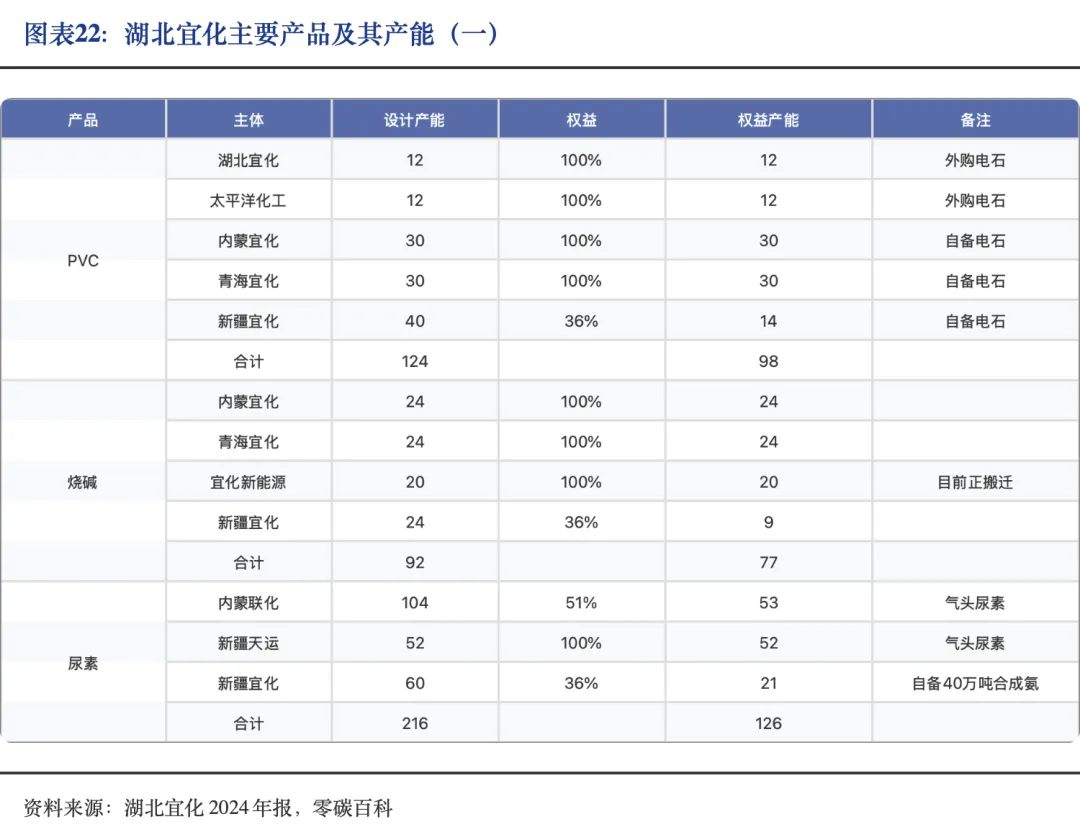 在资源与产能方面,公司具备显著的权益产能布局,包括124万吨PVC、105万吨电石、92万吨烧碱,以及216万吨尿素、126万吨磷酸二铵、8万吨保险粉和6万吨季戊四醇等多元化产品产能,主要分布于内蒙古、新疆、青海及宜昌等生产基地,为其产业链协同与升级提供了扎实的产能基础。