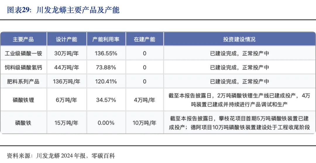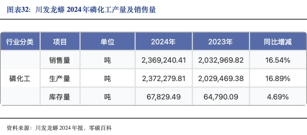 上游磷矿石行业方面,川发龙蟒目前拥有磷矿资源储量约1.3亿吨,原矿年生产能力为410万吨。2024年其磷矿产量为237.23万吨,同比增长16.01%,所产磷矿主要用于自身生产配套。