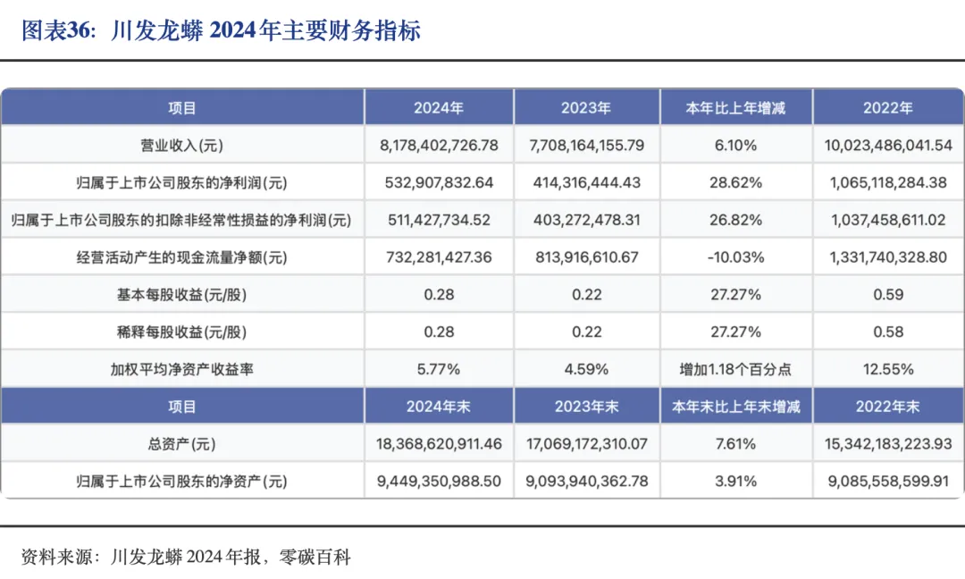 2024年,川发龙蟒实现营业收入817,840.27万元,同比增长6.10%;归属于上市公司股东的净利润53,290.78万元,同比增长28.62%;截至报告期末,公司总资产1,836,862.09万元,较年初增长7.61%,归属于上市公司股东的净资产944,935.10万元,较年初增长3.91%。