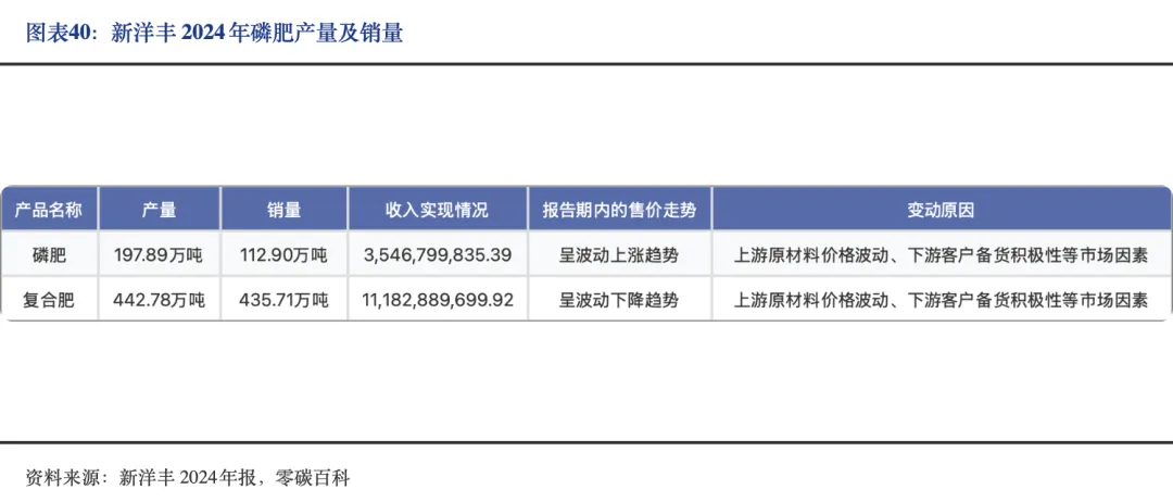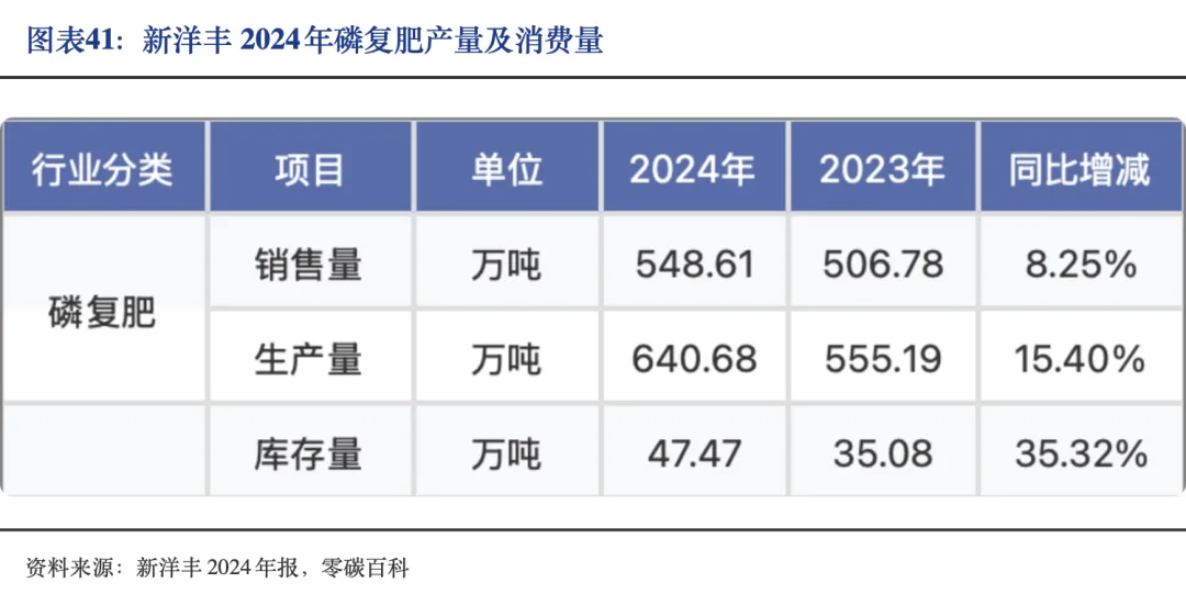 2024年,新洋丰磷肥产量197.89万吨,销量112.90万吨,收入约35.47亿元,售价波动上涨,受益于上游资源价格支撑。公司磷复肥产量640.68万吨,同比增长15.40%,总销量达548.61万吨,但库存同步增长至47.47万吨。