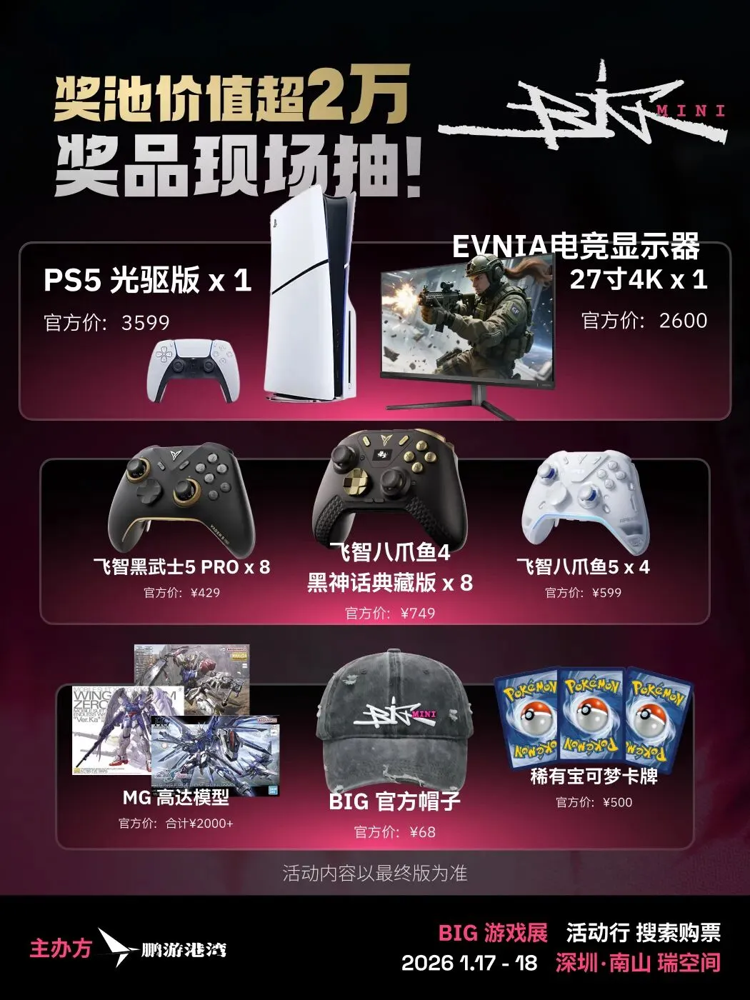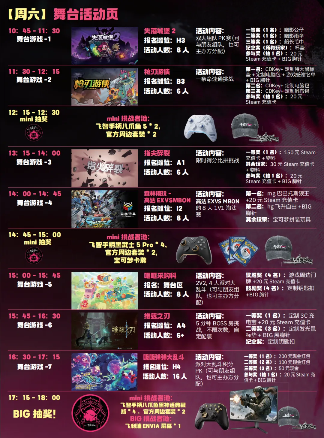 mini奖池的内容为:飞智手柄+展会贩售周边套装+现场神秘突击抽奖
