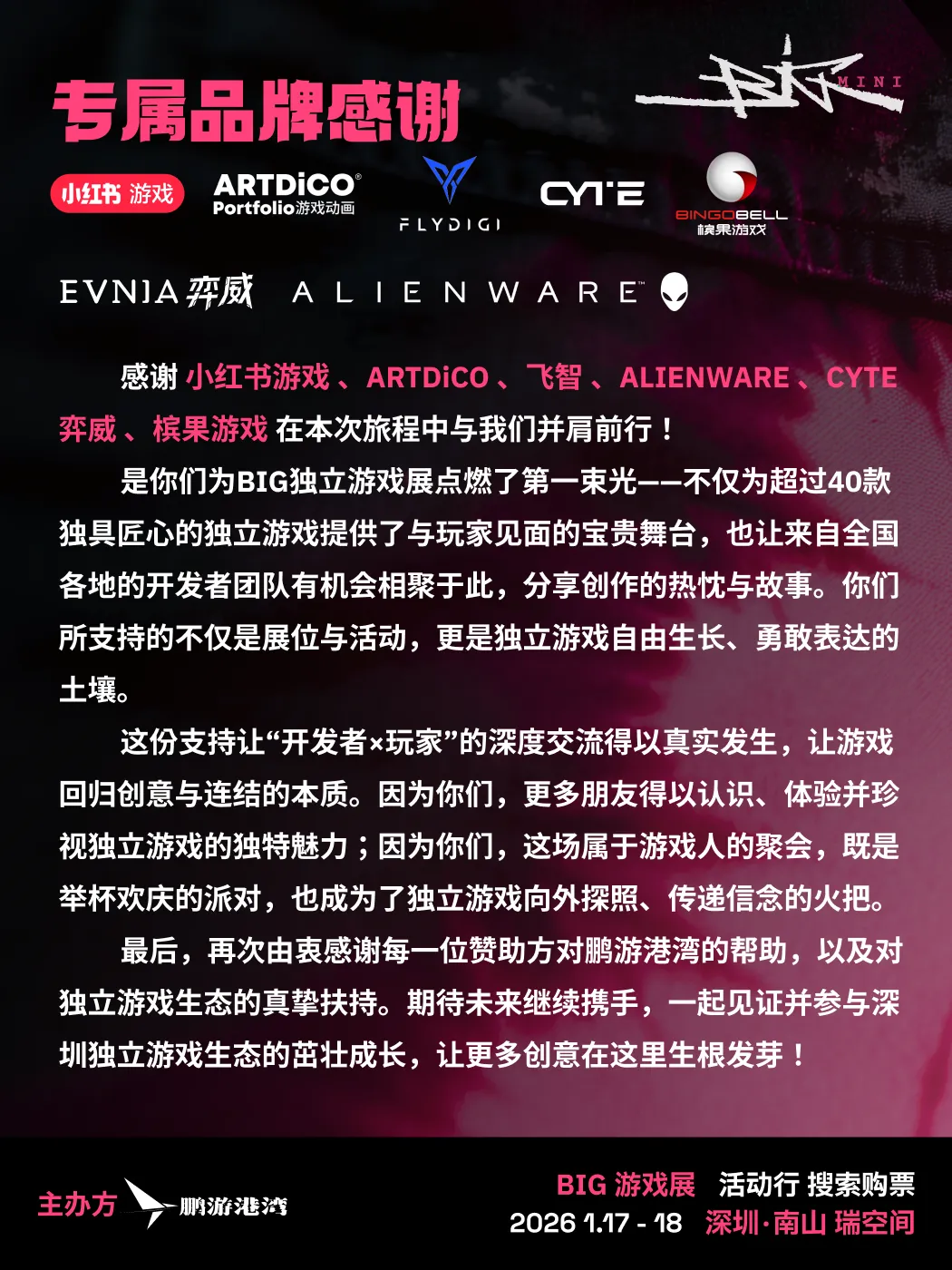 这里是BIG游戏展主办方!非常感谢大家的支持!为了让大家能够玩得更开心,