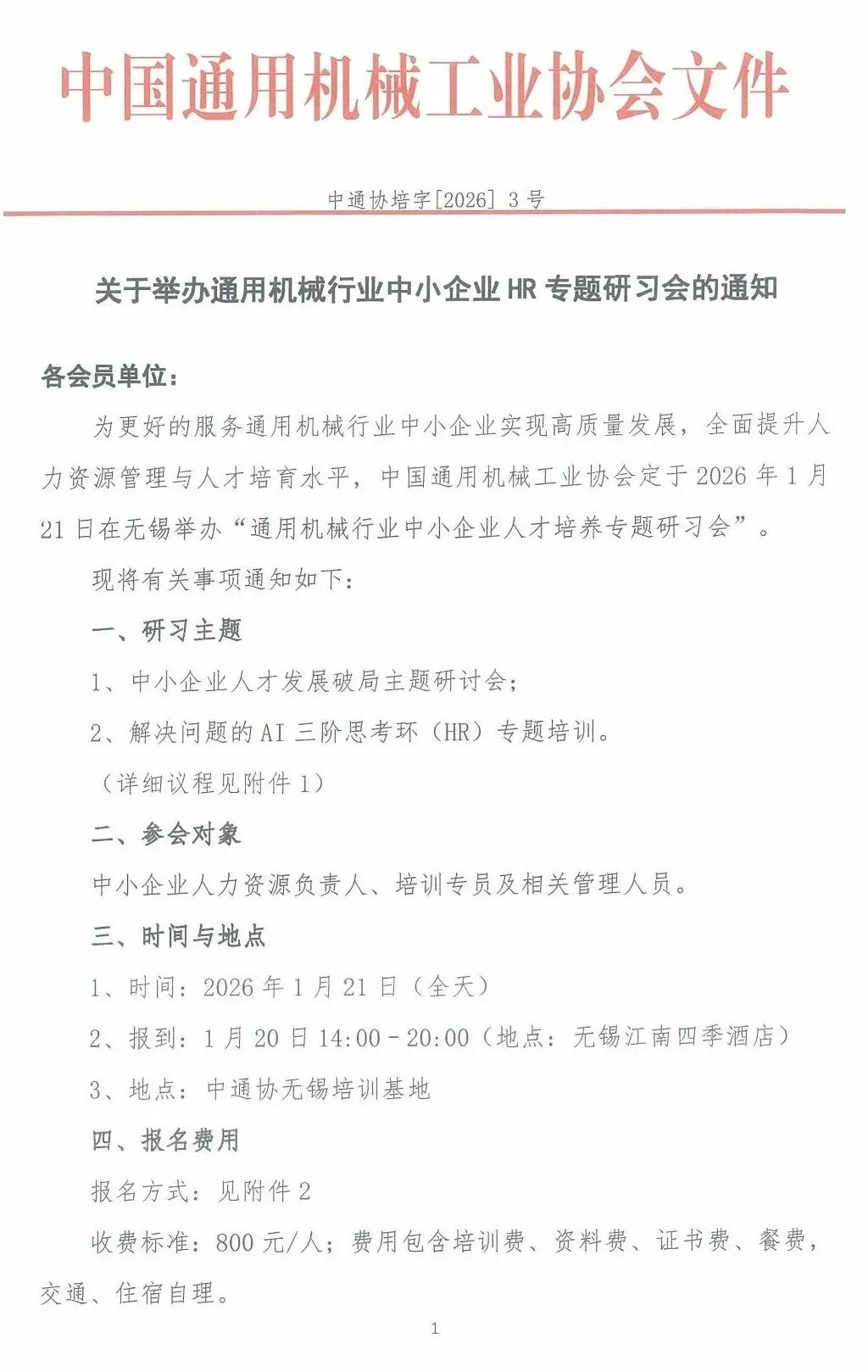关于举办通用机械行业中小企业HR专题研习会的通知