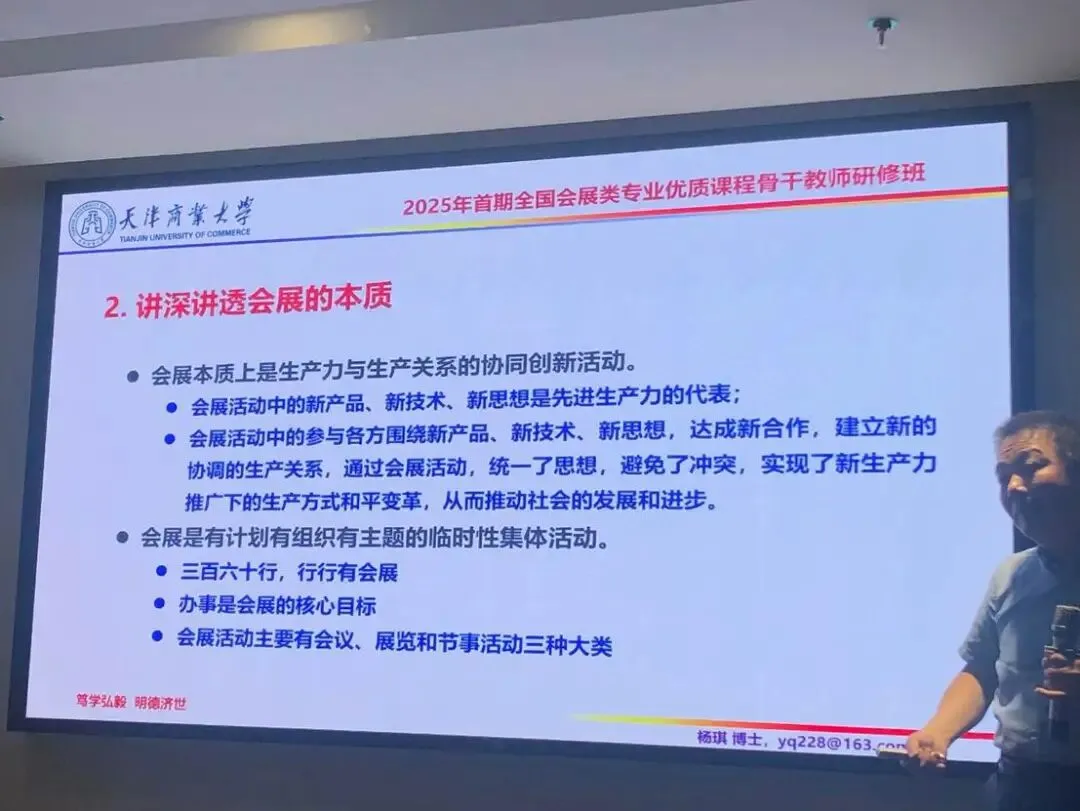 走进任何一场大型展会,我们看到的是琳琅满目的展品、熙熙攘攘的人群、此起彼伏的洽谈声。表面上,这不过是一场商业活动、一次信息交流。然而,当我们透过现象看本质,会发现会展活动远比我们想象的要深刻得多——它实际上是人类社会生产力与生产关系协同演进的微缩剧场。天津商业大学杨琪老师曾提出一个令人深思的观点:会展本质上是生产力与生产关系的协同创新活动。这一论断,将会展从单纯的商业范畴提升到了政治经济学的高度,为我们理解会展的社会功能提供了全新的理论视角。(图:2025年8月杨琪老师在武汉华中科技大学出版社授课)那么,为什么会展能够承载如此宏大的社会叙事?让我们从生产力与生产关系这对经典范畴出发,一步步揭开会展活动的本质面纱。在展开论述之前,我们有必要先厘清两个马克思主义的基本概念。生产力,通俗地说,就是人类改造自然、创造财富的能力。它由三个组基本的要素构成:劳动者(干活的人)、劳动资料(干活用的工具)、劳动对象(被加工的东西)。一个木匠用锯子加工木材,木匠是劳动者,锯子是劳动资料,木材是劳动对象,三者结合形成的改造能力就是生产力。生产关系,则是人们在生产过程中结成的社会关系。它同样也包含三个要素:生产资料归谁所有(所有制形式)、人们在生产中处于什么地位(是老板还是员工、是合作还是雇佣)、生产出来的东西怎么分配。这三个要素决定了人与人之间的经济利益关系。马克思告诉我们,生产力决定生产关系,生产关系反作用于生产力。当生产力发展了,原有的生产关系如果不能适应,就会阻碍生产力的进一步发展;反之,如果生产关系能够适时调整,就能促进生产力的更好发展。人类社会的进步,从根本上说,就是生产力与生产关系不断调适、协同演进的过程。那么问题来了:这种调适是如何实现的?在传统社会,往往需要通过激烈的社会变革甚至革命。但在现代社会,是否存在一种更加平和、更加高效的方式?杨琪老师的回答是:会展就是这样一种方式。每一场专业展会,本质上都是先进生产力的集中展示。以消费电子展为例,最新的芯片技术、最前沿的人工智能应用、最具革命性的产品设计,都会在这里首次亮相。这些新产品、新技术,代表的正是人类生产力的最新水平。从生产力三要素的角度来看,会展全面展示了生产力的进步。- 在劳动者层面,展会汇聚了各行各业最优秀的研发人员、设计师、工程师,他们带来的不仅是产品,更是智慧和创意。
