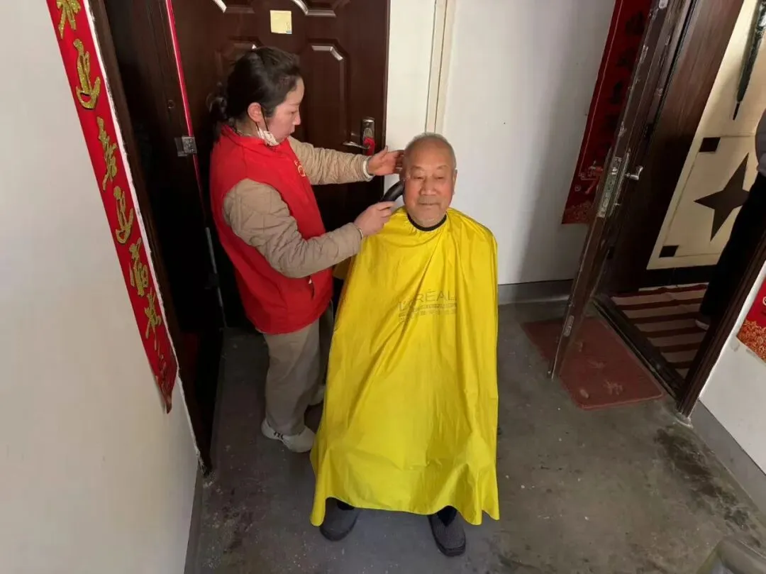 “手艺真不错,剪完头发清爽多了!”在义剪区,理发师志愿者们手法娴熟,一边与居民们亲切交谈,一边精心修剪发型。针对行动不便的特殊群体,志愿者们提供“上门义剪,关爱无死角”上门理发服务。随着理发师手中的剪刀上下翻飞,居民们原本凌乱的发型变得整洁利落,精神面貌焕然一新,脸上洋溢着满意的笑容,切实感受到了社区的关怀与温暖。