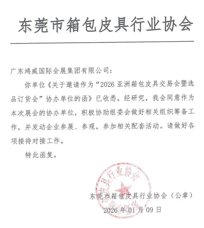 东莞市箱包皮具行业协会正式确认,将以【协办单位】的身份,深度参与亚洲箱包皮具交易会!