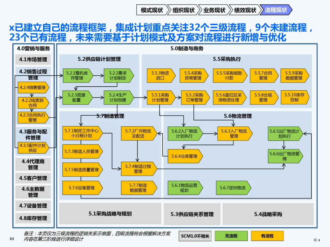 供应链管理流程框架:交期评估、采购订单、生产排产计划等32个三级流程