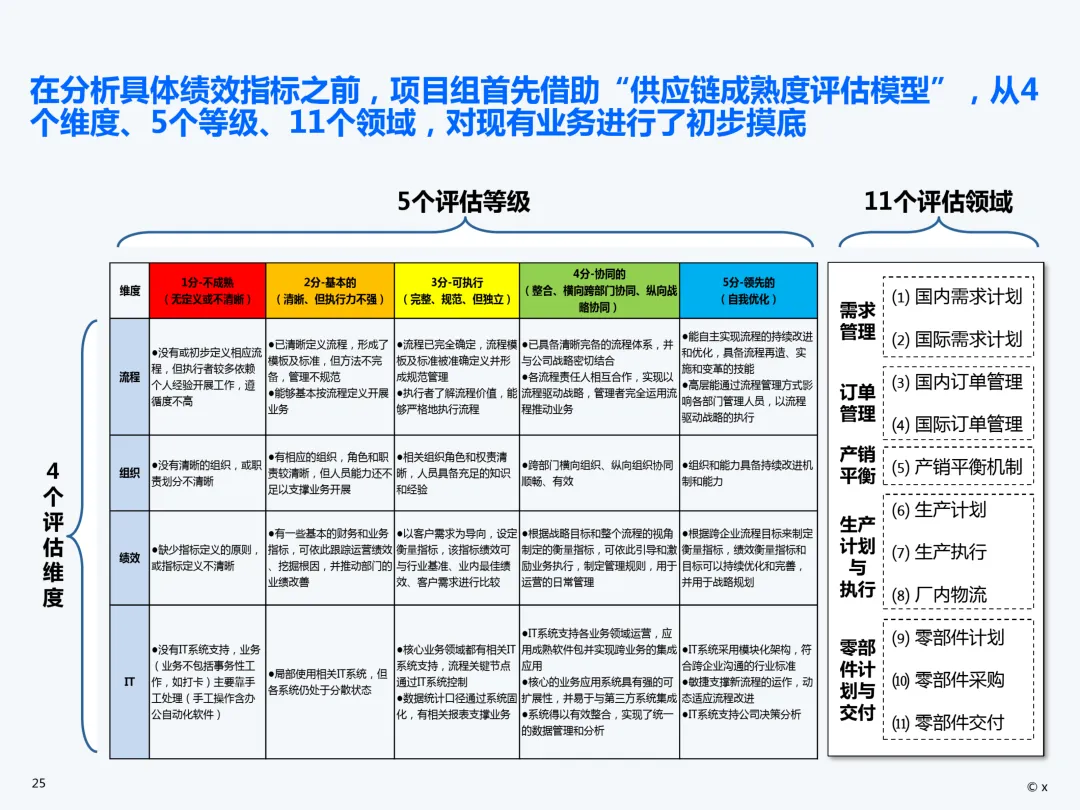 《124页PPT制造业集团供应链管理成熟度评估模型及集成计划流程框架》供应链成熟度评估模型,是精准诊断企业供应链现状的核心工具,通过多维度、分级别的评估,实现 “对症下药”:............................................... 如何获取更多资料下载?