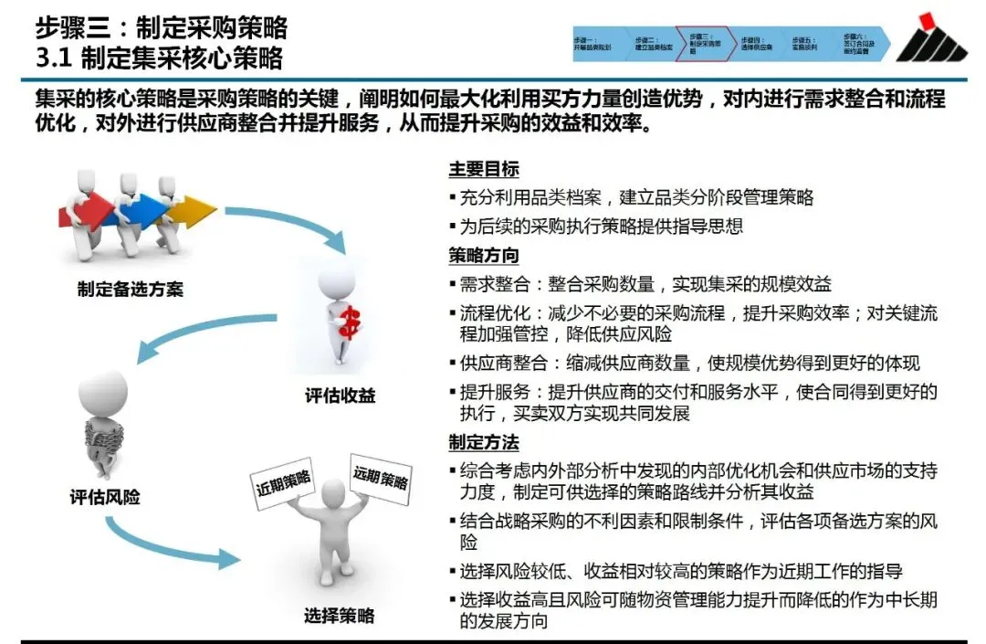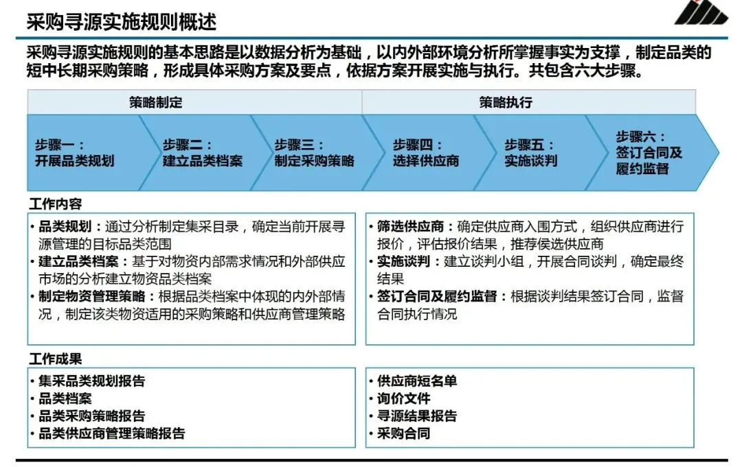 ③制定采购策略:形成具体的行动纲领。基于档案中的“关键发现”,策略报告需明确核心方向:是主攻需求整合以获取规模优势,还是优化流程以提升效率,或是整合供应商以强化管理?同时,它也必须规划出供应商选择、谈判焦点及合同管理的具体路径。策略报告的价值在于,它让后续所有执行动作都有了“为什么这么做”的依据。