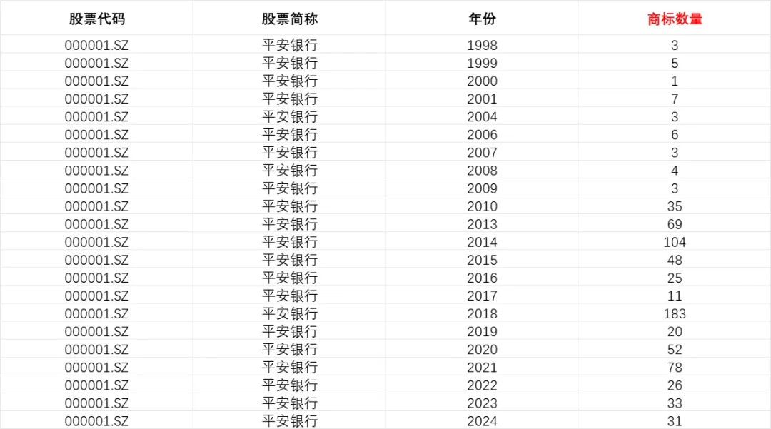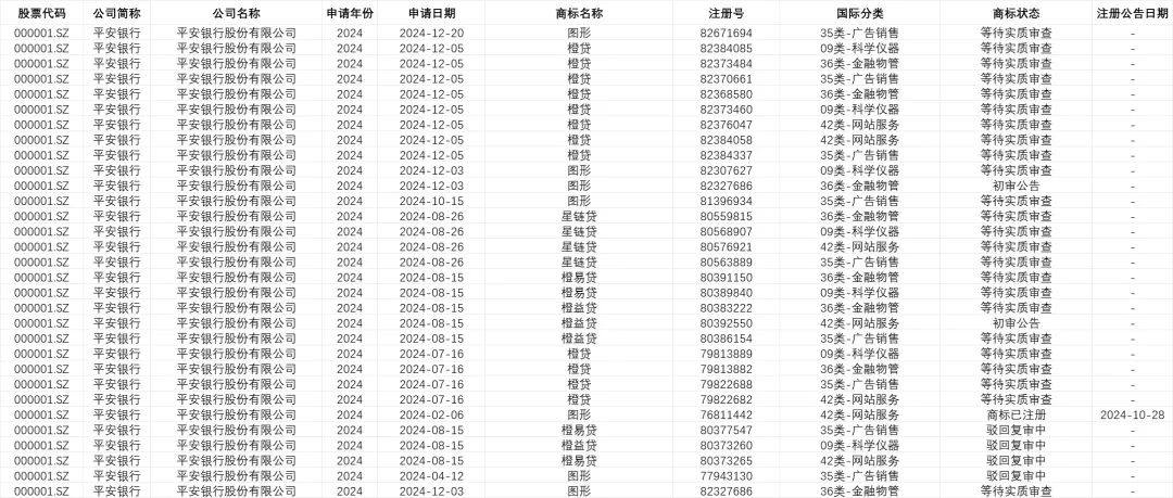数据指标:股票代码、商标名称、公司简称、注册号、公司名称、国际分类、申请年份、商标状态、申请日期、注册公告日期。