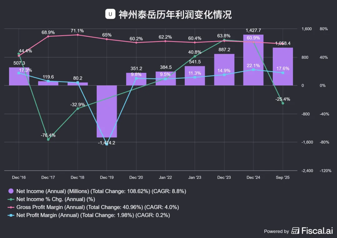 2024年,神州泰岳实现归属于上市公司股东的净利润14.28亿元,同比增长60.92%;归属于上市公司股东的扣除非经常性损益的净利润11.47亿元,同比增长38.29%。2025年三季报,神州泰岳实现归属于上市公司股东的净利润7.24亿元,同比下降33.77%;归属于上市公司股东的扣除非经常性损益的净利润6.96亿元,同比下降16.42%。