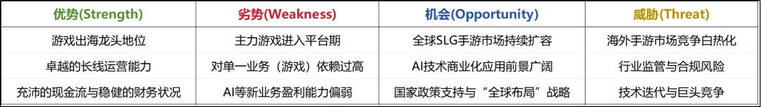 增长逻辑:一方面依赖于存量游戏的持续优化和流水挖掘;另一方面通过新品迭代,利用已验证的玩法框架和发行经验,开拓新的增长曲线。