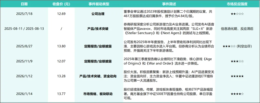 短期(6个月):关注公司现有主力游戏的生命周期运营数据、新游戏上线进度及其初期表现,同时密切跟踪并购子公司的整合成效与业绩兑现情况。