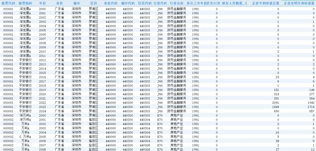 数据名称:上市公司-研发投入与专利数据