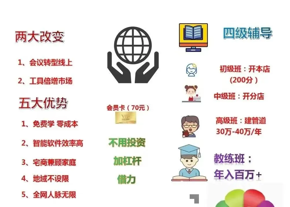 公司解决生意上的资金问题,系统解决建立生意的方法策略以及教育和培训,教练团队味你在发展生意时提供咨询和指导,你需要70元,便可以加盟进来。加盟后,你立刻拥有三大资源,公司、系统和教练团队,这三大资源鼎力支持你发展自己的生意。