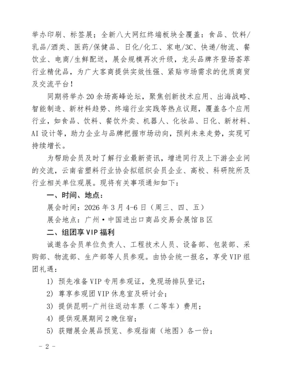 为帮助会员及时了解行业最新资讯,增进同行及上下游企业间的交流,云南省塑料行业协会拟组织会员企业、高校、科研院所及行业相关单位观展。现将有关事项通知如下: