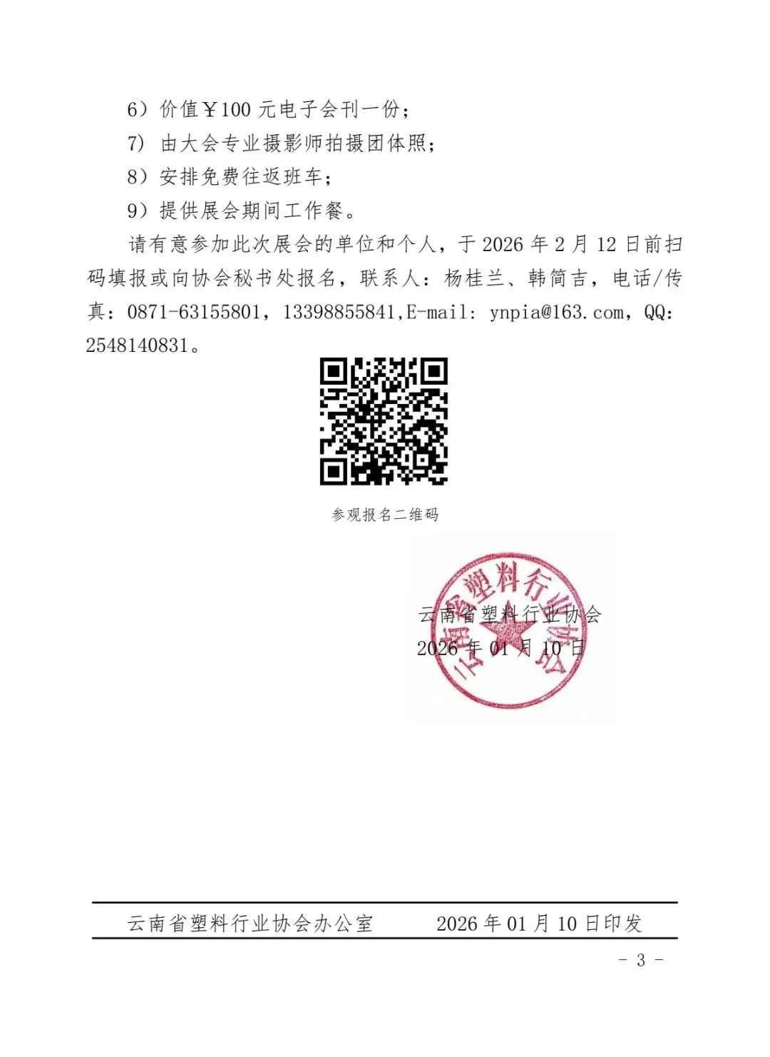 请有意参加此次展会的单位和个人,于2026年2月12日前扫码填报或向协会秘书处报名,联系人:杨桂兰、韩简吉,电话/传真:0871-63155801,13398855841,E-mail: ynpia@163.com,QQ:2548140831。