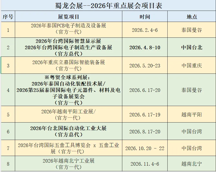 蜀龙会展2026年重点展会项目,供各企业参考,欢迎报名参展或随团观展。