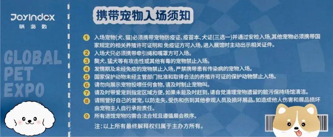 ✅ 健康要求:宠物需打满 3 针疫苗,凭疫苗本及相关证件入场,生病期宠物建议留家休养?