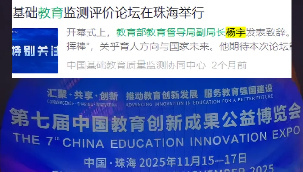 但通过大数据搜索,杨宇最后1次出现在公众视野中报道是在2025年的11月15号 出席第七届中国教育创新成果博览会,在开幕式现场他还发表了致辞,之后便再无相关新闻报道,直至此次任上官宣被查!