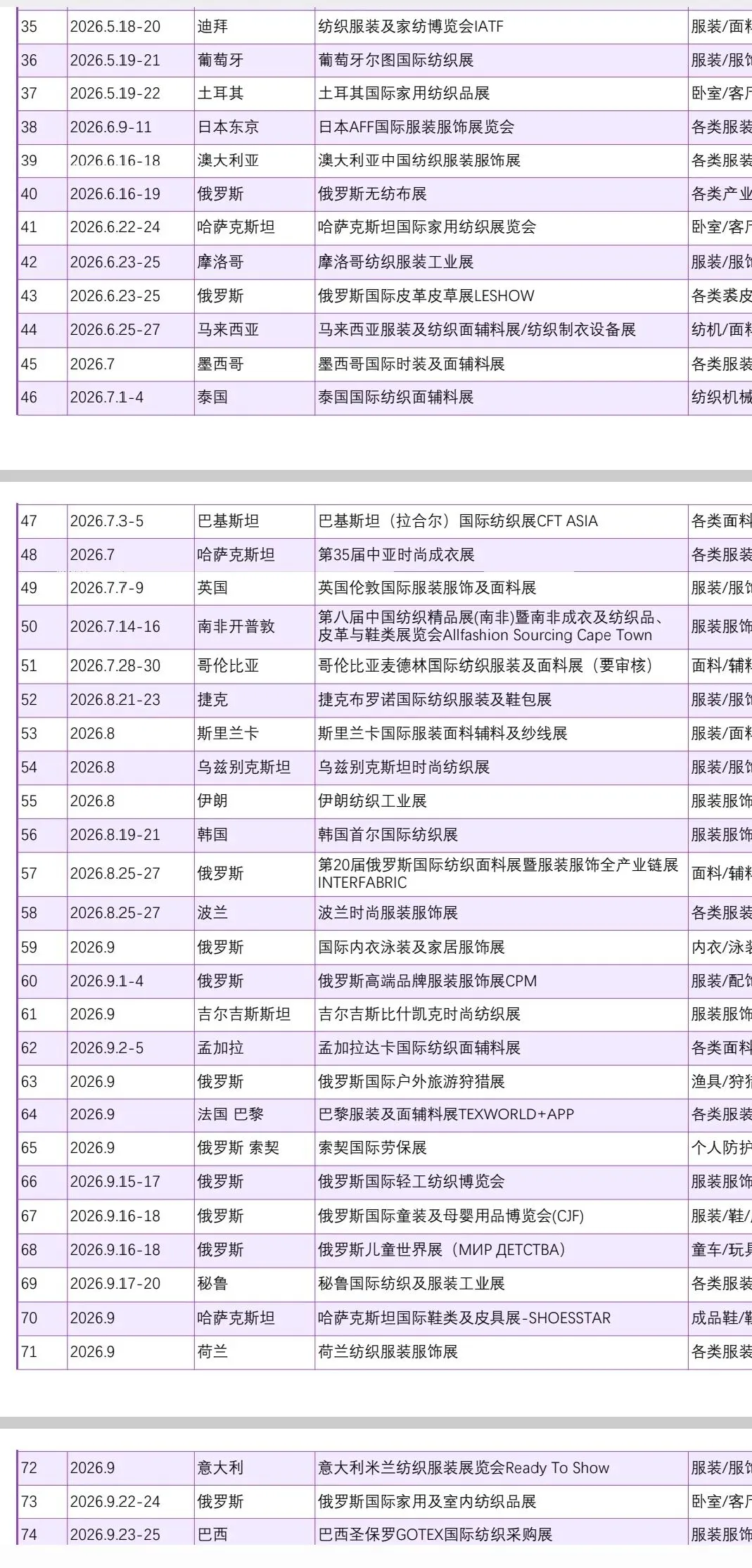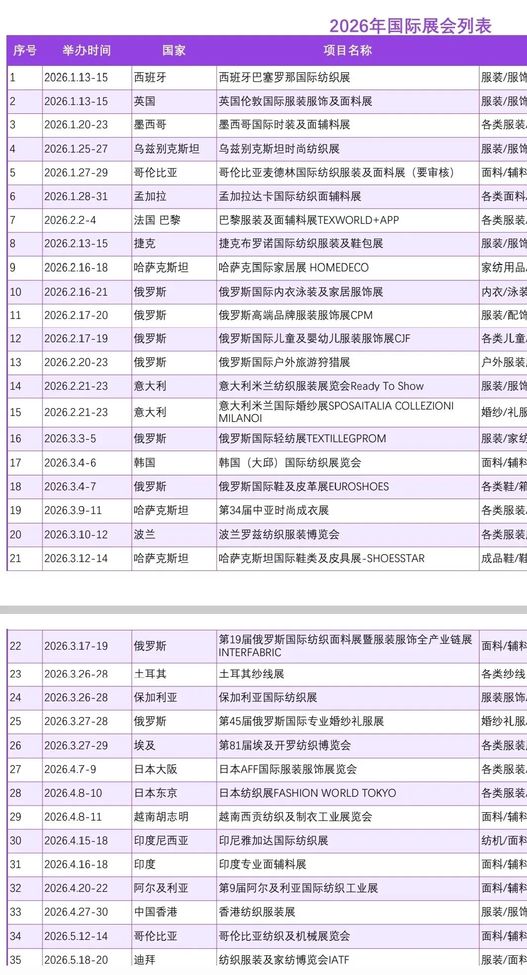 纺织服装行业的发展,始终离不开对国际市场的探索与布局,2026年,愿这份展会排期表成为你出海的“导航图”,扫码与我们同行,共赴全球商贸盛宴!