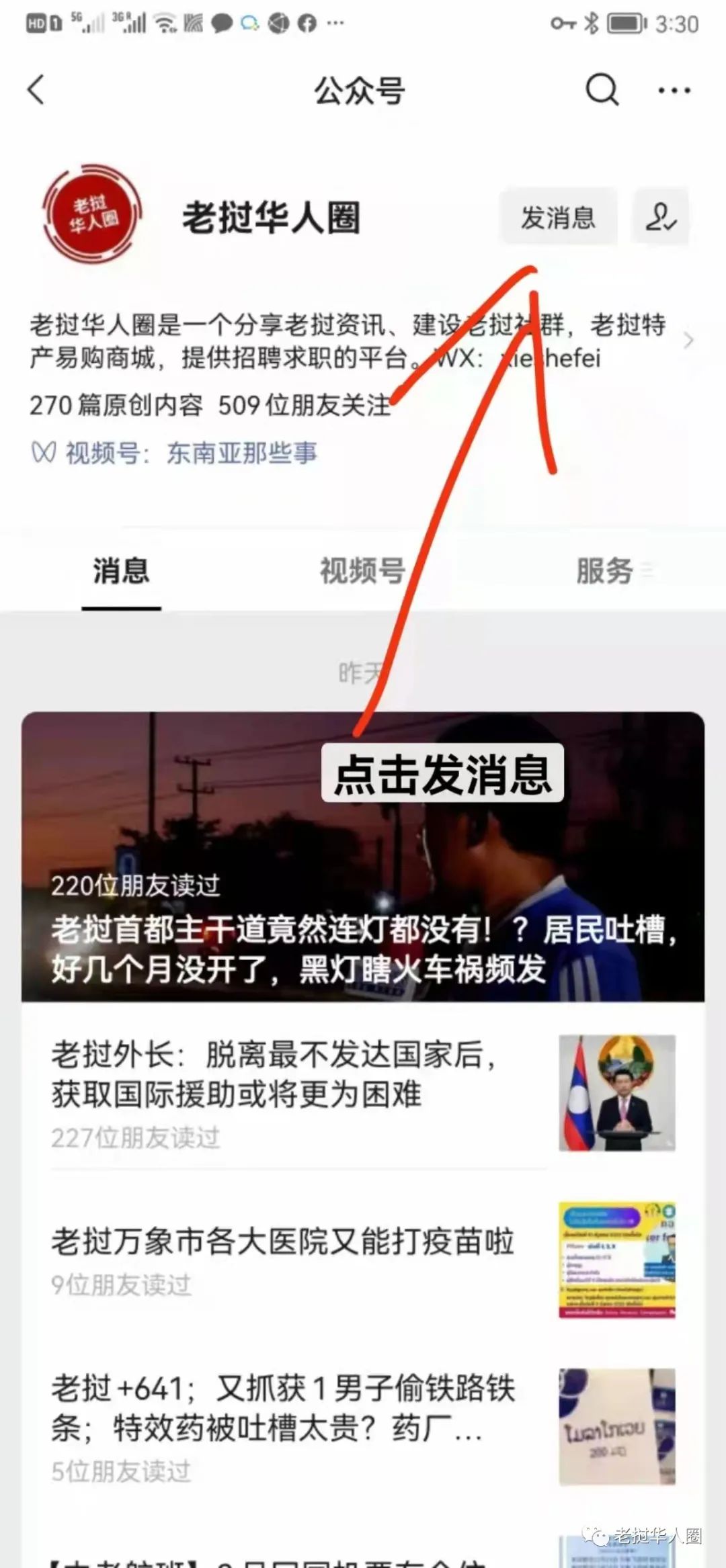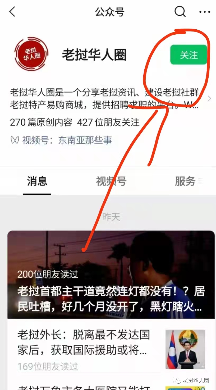微信搜索“老挝华人圈”,或点击此链接,然后点击关注