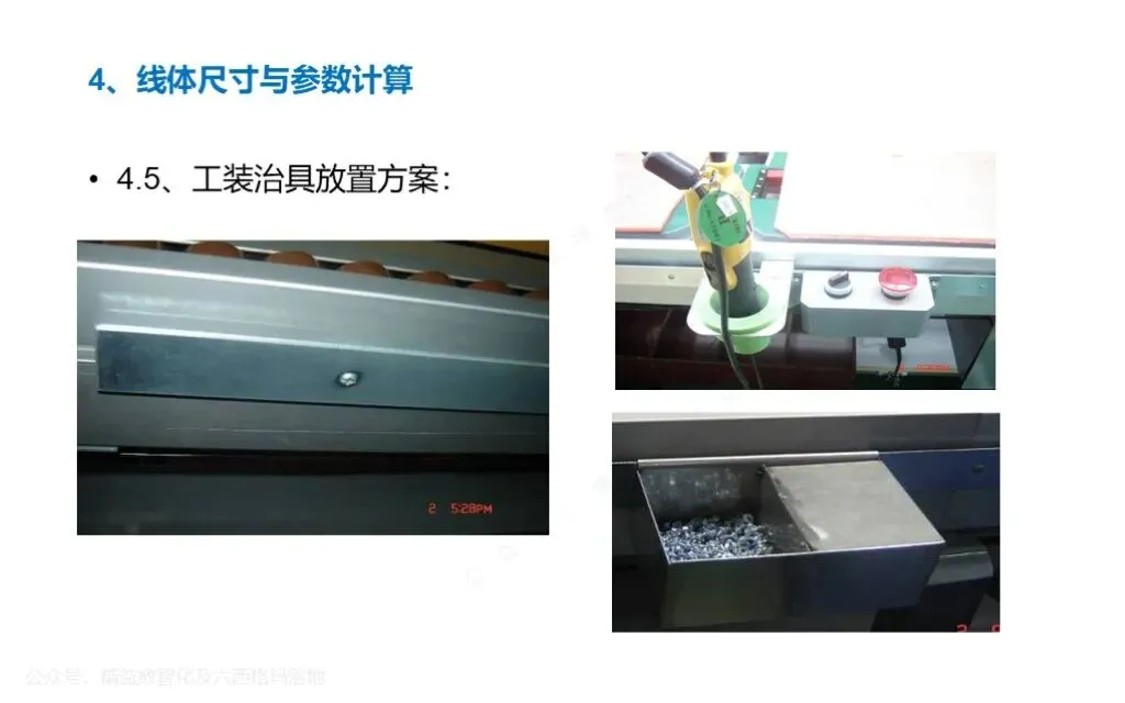 结合车间空间大小,选择合适的线体形态(如直线型、U 型、环形、CELL 单元型),合理排布设备、操作台、物料区、检测区和通道,缩短物料搬运距离,减少无效移动 - 设备与工装选型