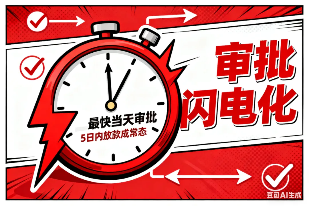 审批闪电化: 流程全面优化,最快当天审批,5日内放款成常态;