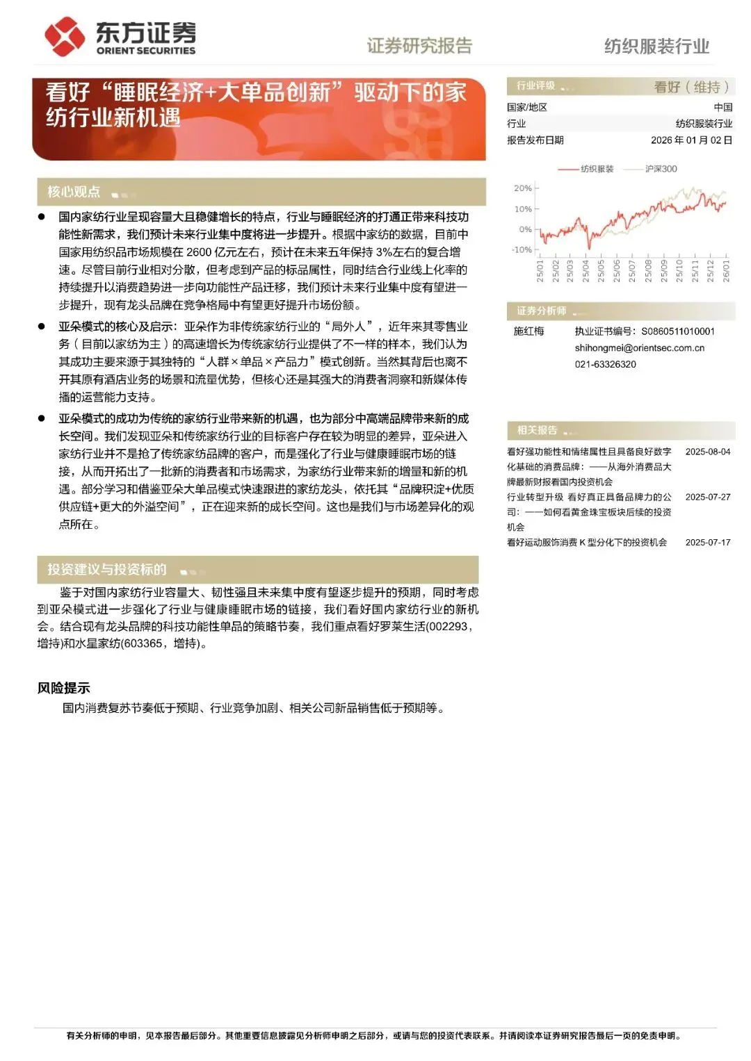 回复暗号:纺织服装行业:看好“睡眠经济%2b大单品创新”驱动下的家纺行业新机遇-260102-东方证券-27页