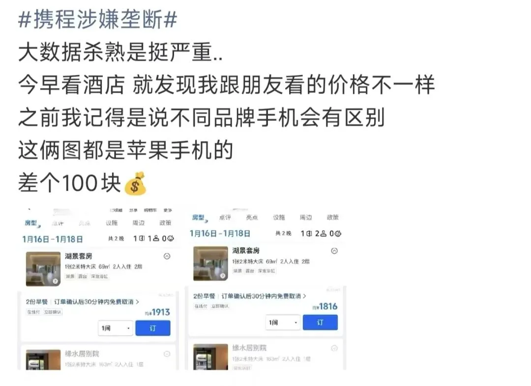 这就是所谓的“大数据杀熟”:携程通过你的手机型号、预订频率、搜索次数,判断你“是不是好欺负”。