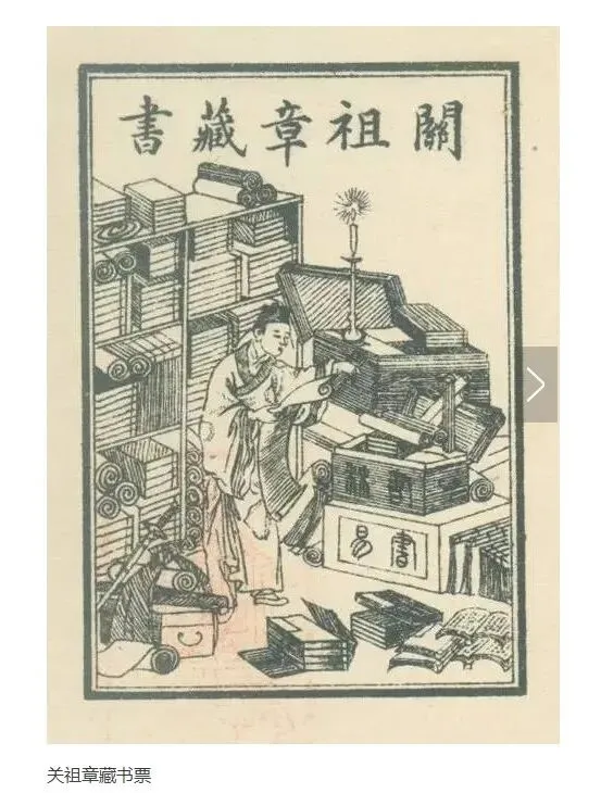 关祖章的事迹不是十分显赫,他最为人称道的是:他是我国最早使用藏书票的人。台湾藏书票专家吴兴文在一本1913年出版的《图解法文百科辞典》中发现了“关祖章藏书”藏书票。后来有人在《京张铁路摄影》(约1910年)和杰克·伦敦著《阶级的战争》(1905年出版)等书中发现了相同的藏书票,目前共发现5枚,十分珍贵。
