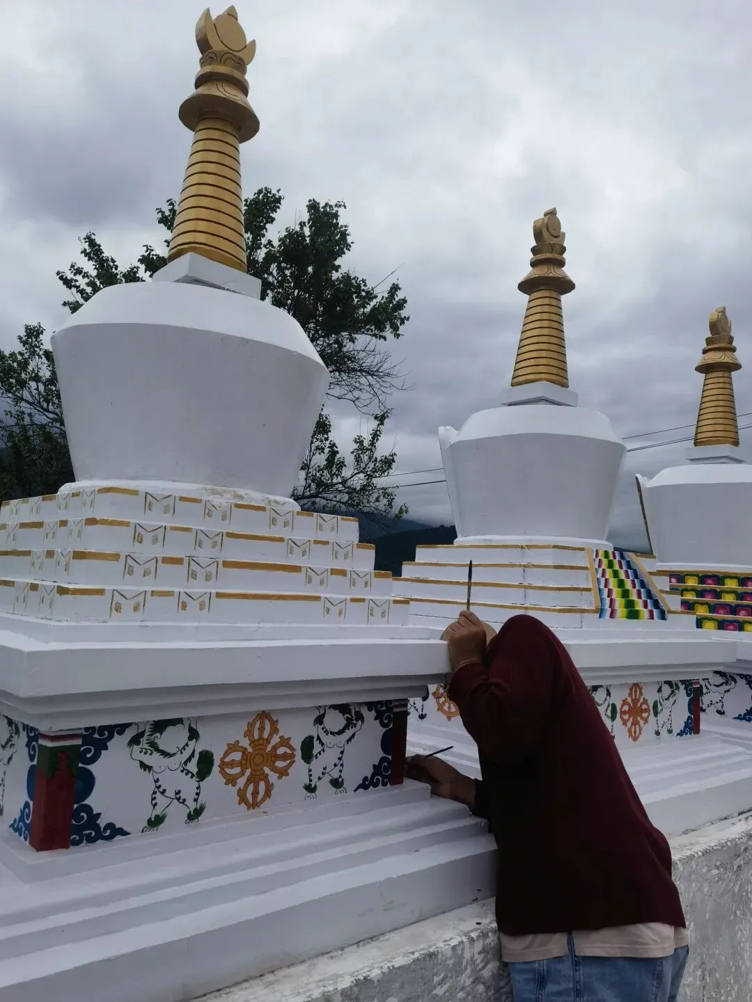 记得在老家修养,爬山转经筒时遇到画白塔的禅师,我们很有眼缘的相互笑了一下,后来我们一家去寺院,说要拜访一个远房舅舅,没想到竟然是他,我俩从早聊到了下午,聊天当中竟然有时间静止的感觉,在老家短短一个多月,我几次前去,希望在迷茫中得到很多答案。