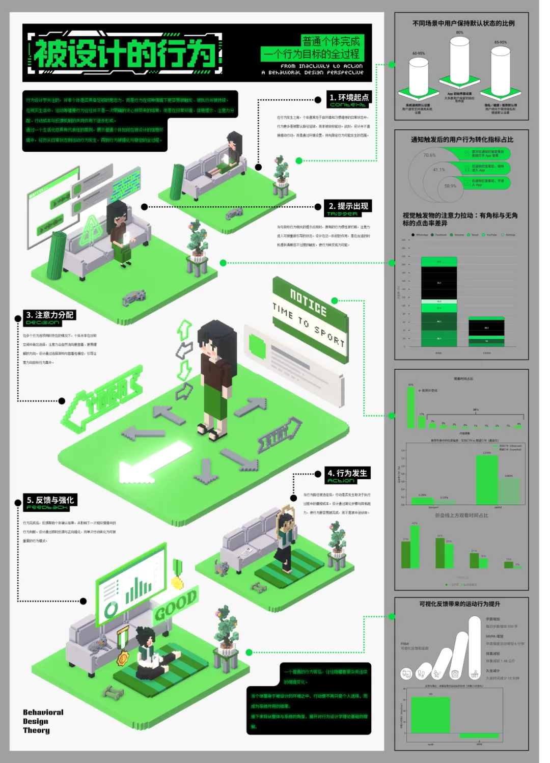 本设计以行为设计学为理论框架,关注行为在情境中被触发、完成并逐步稳定下来的过程。相较于将行为视为个体意志的结果,本设计更强调环境结构、信息呈现、选择方式、行动难度与反馈机制之间的共同作用。