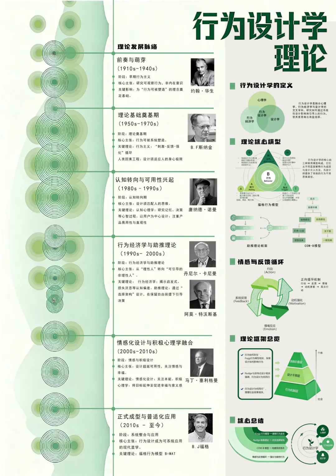 行为设计学形成于20世纪末至21世纪初的跨学科研究取向,代表性学者包括20世纪80年代提出用户中心设计思想的唐·诺曼(Don Norman)以及21世纪初提出福格行为模型的BJ·福格(BJ Fogg)。旨在通过对人的认知与决策规律的理解,系统性地影响行为的发生、选择与持续。