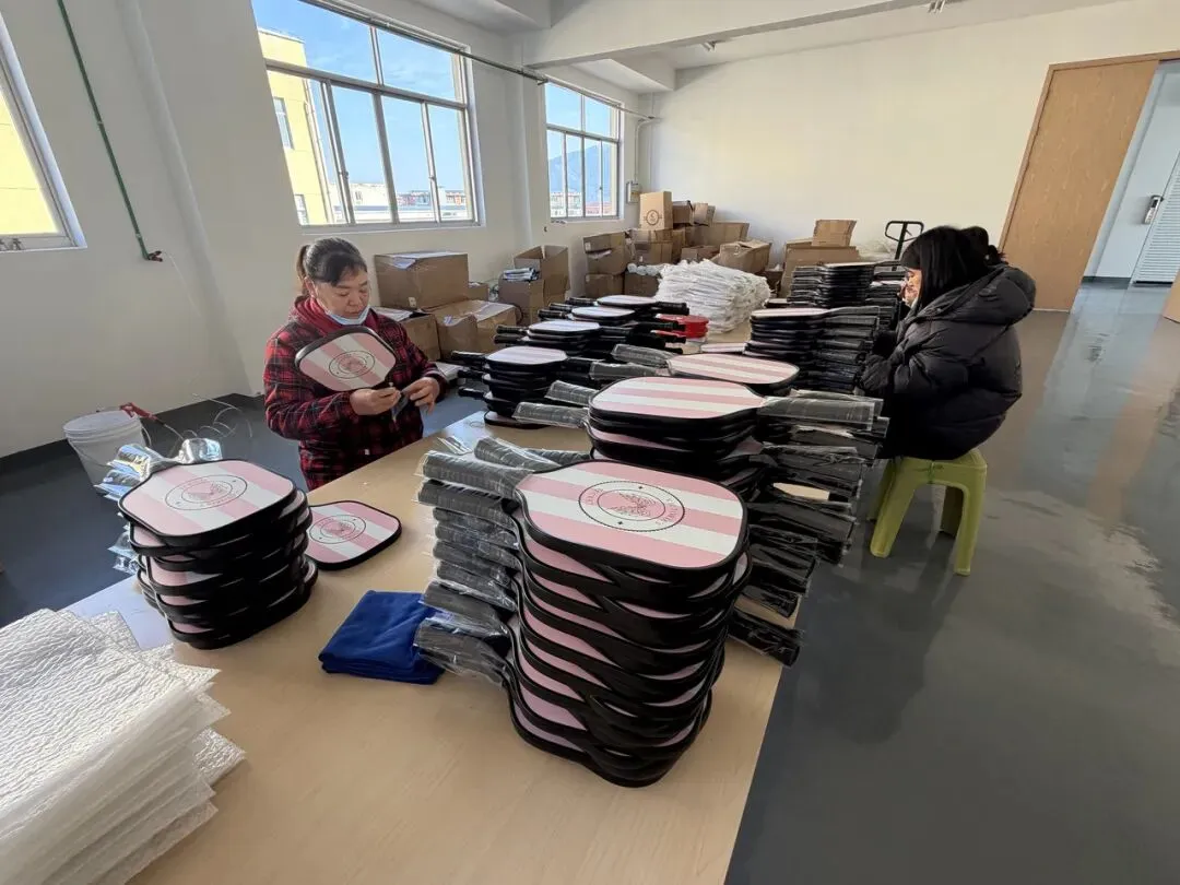 创新步伐不止于此。近期,企业推出融入“十二生肖”文化元素的匹克球拍,凭借鲜明的特色斩获近千套定制订单;同时,针对海外高端客户需求,提供个性化定制服务。2026年,工厂计划投入400余万元扩大产能,建设抗击打实验室,新增生产线,以持续的研发投入抢订单、拓市场,实现外贸稳增长目标。