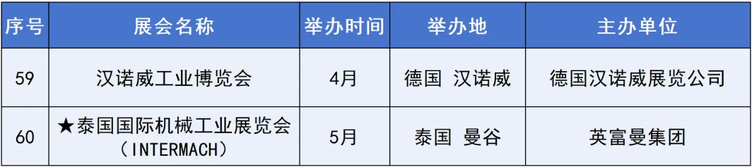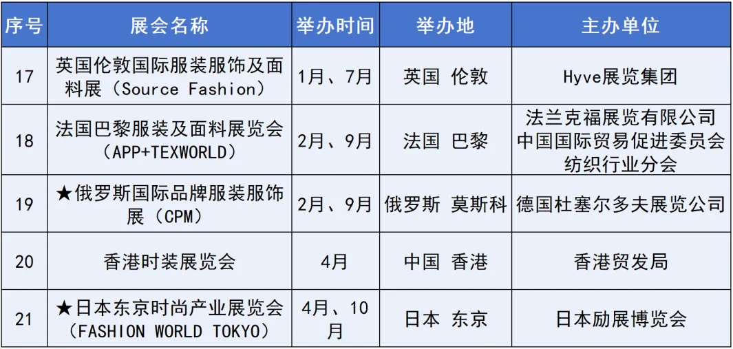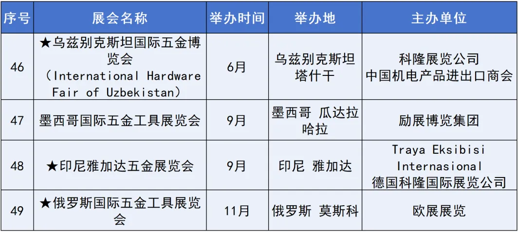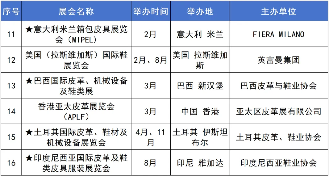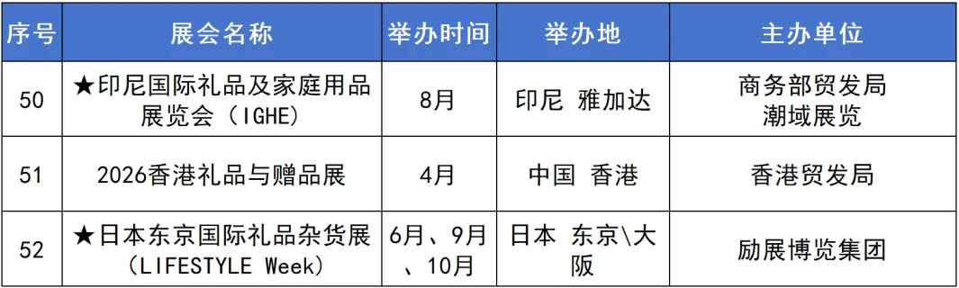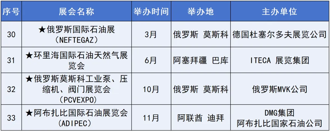 注:“★”展会为“一带一路”沿线展会或RCEP区域展会。