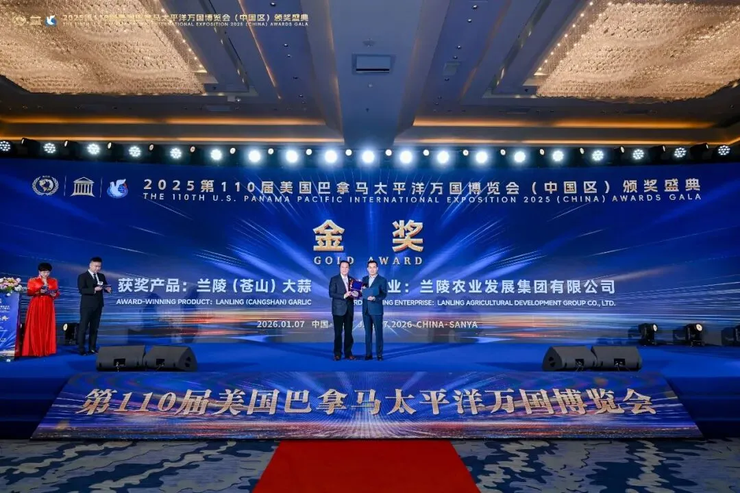 近日,第110届美国巴拿马太平洋万国博览会颁奖盛典暨第十二届世界华商(海南)论坛在海南三亚举行。来自临沂市兰陵县的中国国家地理标志产品——“兰陵(苍山)大蒜”凭借卓越品质、深厚文化底蕴和鲜明地域特色,在全球众多参赛产品中脱颖而出,一举摘得博览会金奖。这一殊荣不仅是对“兰陵(苍山)大蒜”千年种植历史与优良品质的高度认可,更是对县属国企兰陵农业发展集团深耕特色农业、推动全产业链升级成果的有力彰显。