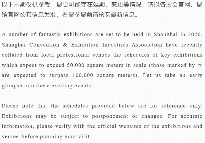 Preview of Highlights in Shanghai's Conventions and Exhibitions in 2026
