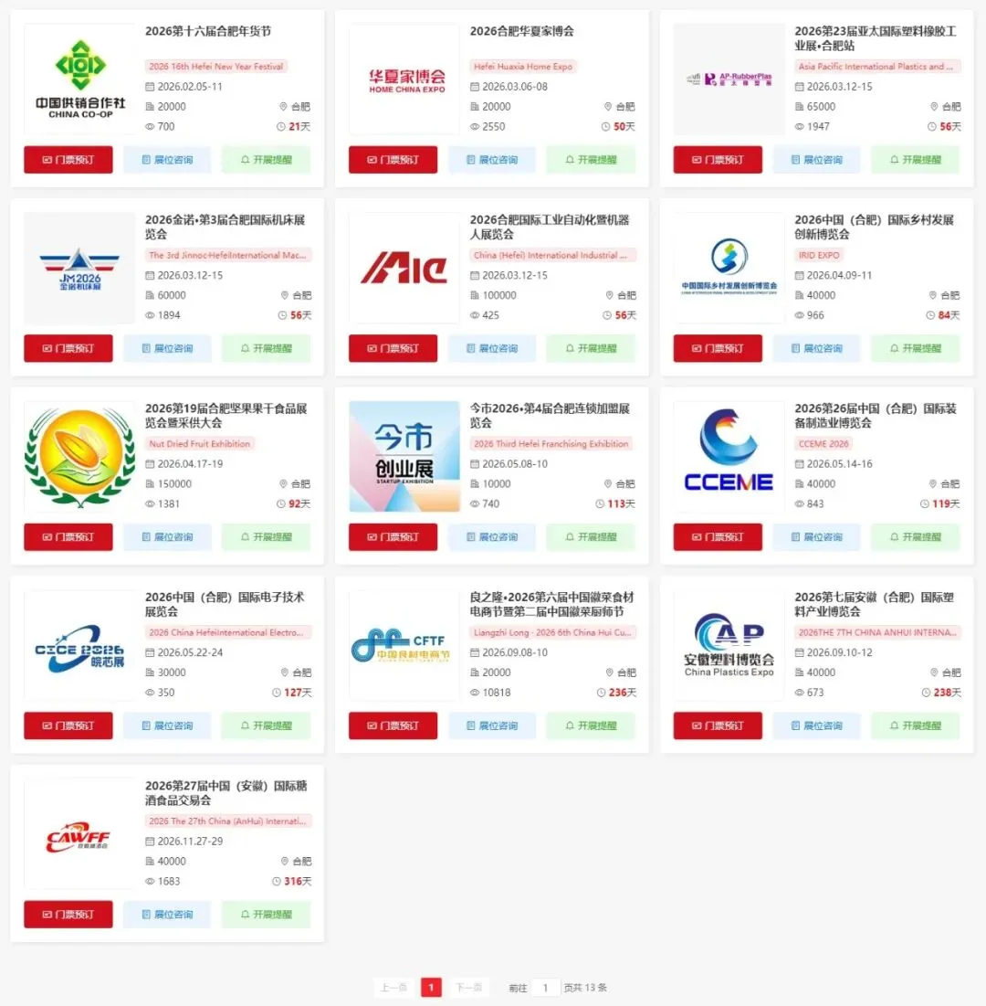 关注【展会一网通】微信公众号,在聊天对话框内点击底部菜单栏【合肥】查看合肥展会最新展会信息、门票预约入口