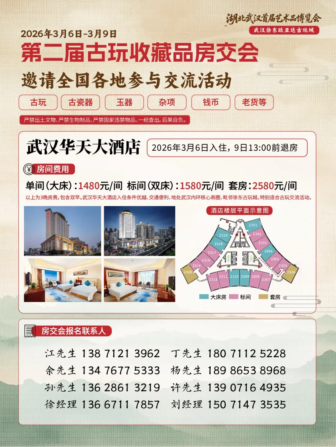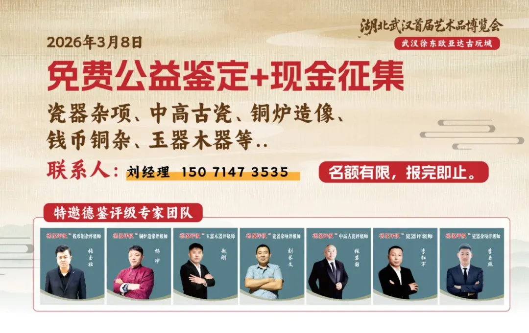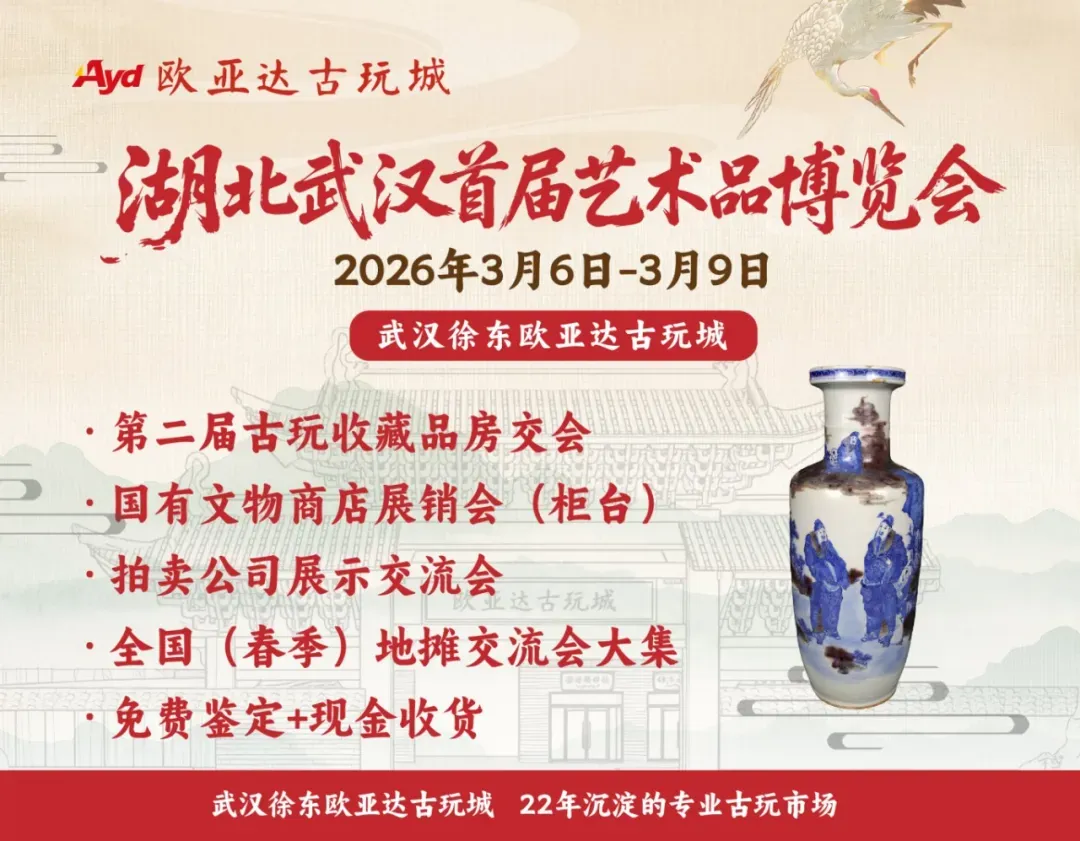 作为湖北武汉首届艺术品博览会,本次活动以武汉徐东欧亚达古玩城第二届古玩收藏品房交会为核心,多元融合国有文物商店展销会、拍卖公司展示交流会、全国(春季)地摊交流会大集、免费鉴定+现金收货等活动,为全国商家、藏家、古玩艺术品爱好者们献上开年首场最具规模的古玩文化艺术盛会!