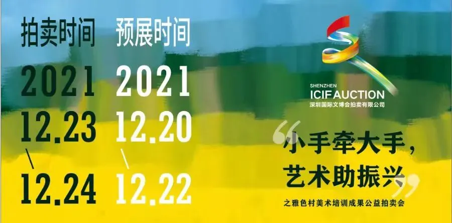 深圳国际文博会拍卖有限公司将于2021年12月24日至30日于文博会拍卖小程序举办文博会公益拍卖。本场拍卖会将拍卖包含爱心艺术家无偿捐赠的精品力作52件书画艺术品,由东方国石文化产业(深圳)有限公司筹集的名家名石精品12件作品,深圳国际文化产业博览交易会公司2021年度“小手牵大手,艺术助振兴”之雅色村美术培训成果师生作品47组,共计111件拍品。