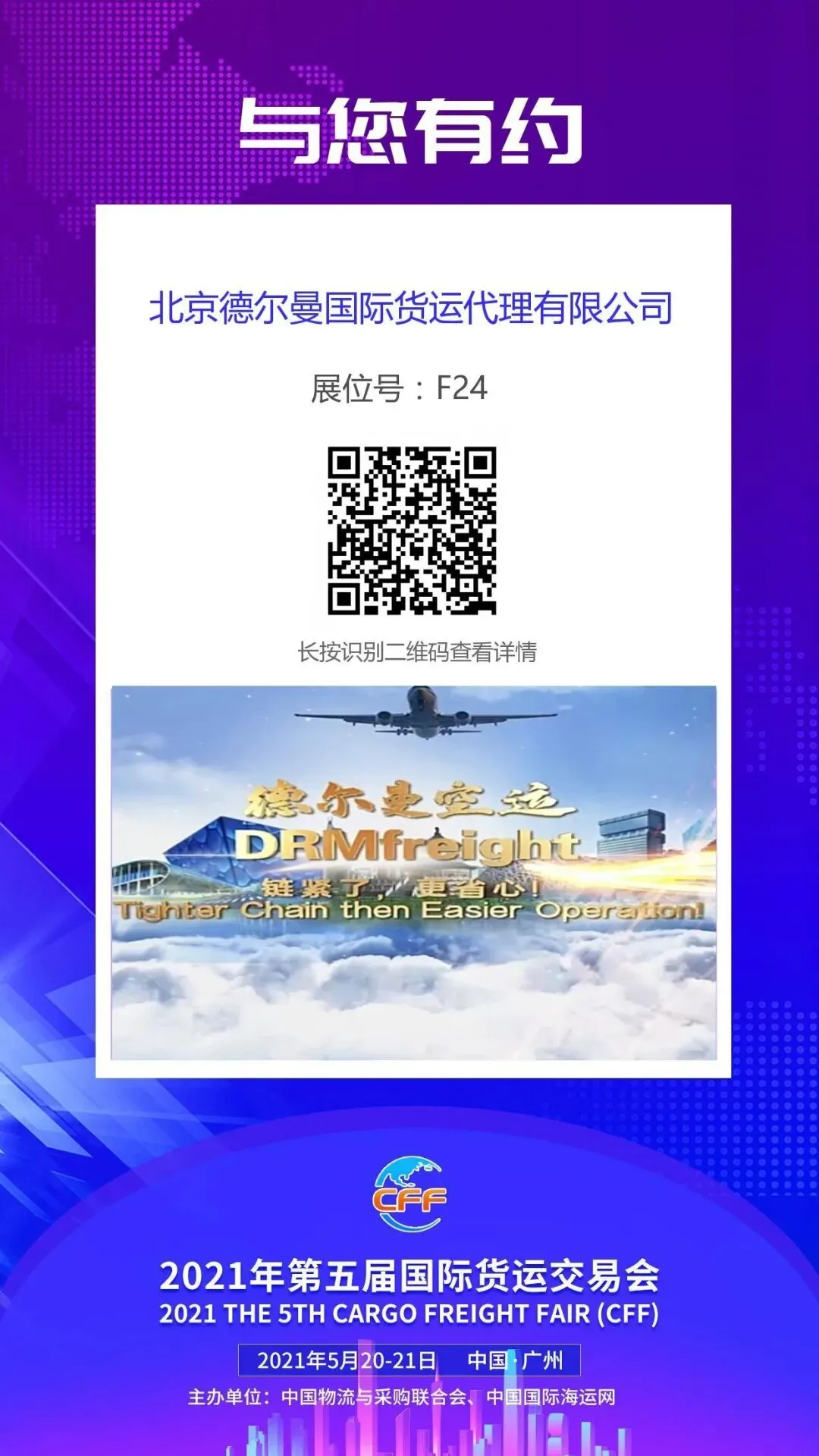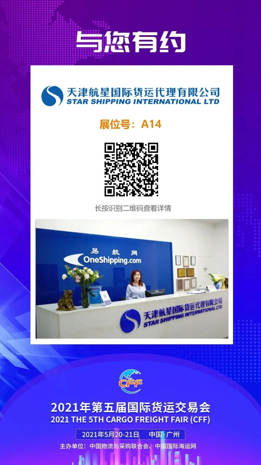 天津航星国际货运代理有限公司成立于2000年,是天津最具规模的货运代理之一,具有海关总署颁发的AEO高级认证企业资质,是20家船东一级订舱代理,凭借20年海运、铁路班列、空运进出口经验,已成为多家大型跨国公司及央企的物流供应商。年海运进出口量达8万余箱,空运进口量名列前茅。公司总部位于天津,在全国设立多家分支机构,可承接各类品名的报关、仓储、中转、拆装箱、陆运到门等业务。多年来相继荣获“首批京津冀影响力品牌”, “金飞马”奖—“中国十佳物流企业”,商务部“中国国际货代行业重点联系企业名单”。至今已成为多家全国性货运组织的口岸会长及副会长单位。天津航星自主研发的货运电子商务平台—易航网,为客户提供船期运价查询、在线订舱、货物跟踪、自助对账等功能,实现了国际物流运输一站式高标准、高效率服务!“第五届国际货运交易会(CFF)”将于2021年5月20-21日在广州白云会议中心举行,将有三千多位参展、观展商现场洽谈对接。