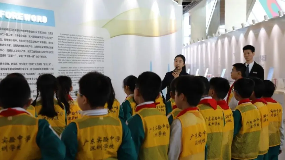 随后,在专业讲解员的带领下,同学们漫步展馆大厅,通过介绍初步了解展馆布局与核心展区概况。深圳工业的迭代升级与创新突破,在讲解员的生动讲述中徐徐展开,让同学们对这座城市的工业底蕴有了初步认知,也为接下来的深度探索埋下好奇的种子。