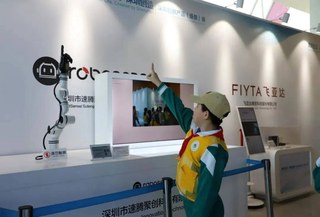 踏入展区,浓厚的科技氛围瞬间吸引了孩子们的目光。这里汇聚了69家深圳优质企业的174件创新产品,宛如一座“未来生活体验馆”。从精准高效的智能制造设备,到绿色环保的新能源产品;从让生活更便捷的数字科技应用、智慧家居方案,到守护健康的高端医疗器材,再到引领出行变革的先进交通装备,多个前沿领域的创新成果集中亮相,全方位展现了“深圳创造”为美好生活赋能的强大力量。