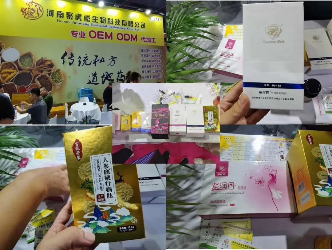 聚虎堂是河南禹州的企业,禹州是中国著名的药都,其中药调配制成也是首屈一指的,这次看到他们拿出了8款产品,比如紧润丹、胸部滋养精油、采花郎、人参鹿鞭牡蛎肽等,聚虎堂的产品在业内口碑是很多的,比如采花郎的原液的成分极其丰富,药液浓度也很高,另外就是一款叫做“梵王”的喷剂,用的也是聚虎堂的原液,效果不错,就是药液浓度高,效果有点能,涂抹多了热辣感很强!