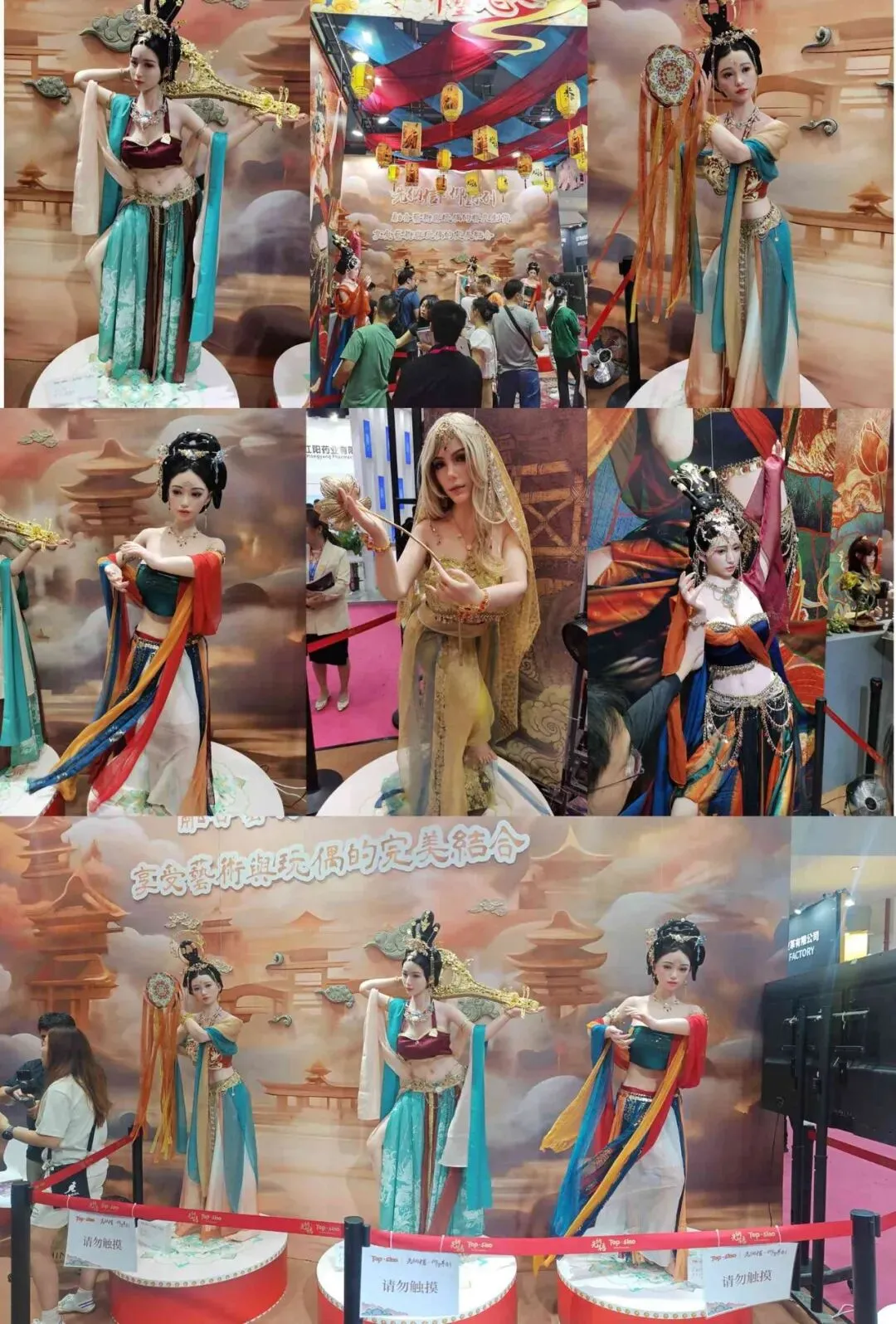 逛到一家仿真娃娃展台,品牌叫做“先纳信”,是主打国潮古风,强调艺术与玩偶的完美结合,不错不错,设计师应该是很有才华的!很多观众都被吸引到他家展台驻足参观,娃娃确实挺漂亮的!