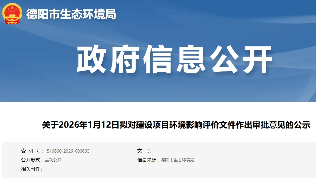 根据建设项目环境影响评价审批程序的有关规定,经审议,我局拟对四川龙蟒新材料有限公司磷石膏综合利用改建项目、绵竹市沐宏新型建材有限公司沐宏建筑用石加工项目环境影响报告表作出批复决定。为保证此次审议工作的严肃性和公正性,现将建设项目环境影响报告表的基本情况予以公示。公示期为2026年1月13日-2026年1月19日(5个工作日)。
