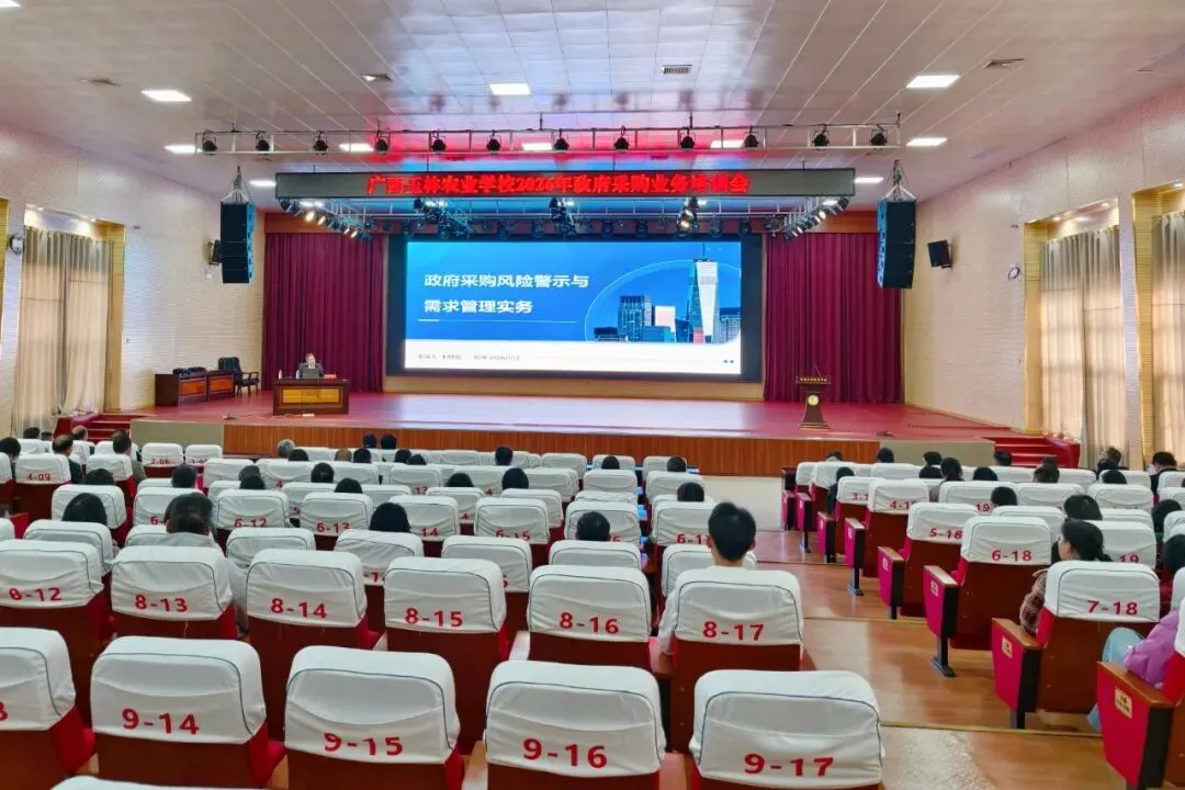 2026年1月13日,广西玉林农业学校开展政府采购业务培训会。此次培训旨在进一步规范该校政府采购工作,防范采购风险,提升校内采购负责人的业务能力与合规意识,保障财政资金使用效益。该校100 多名科室人员和实验员参加培训。