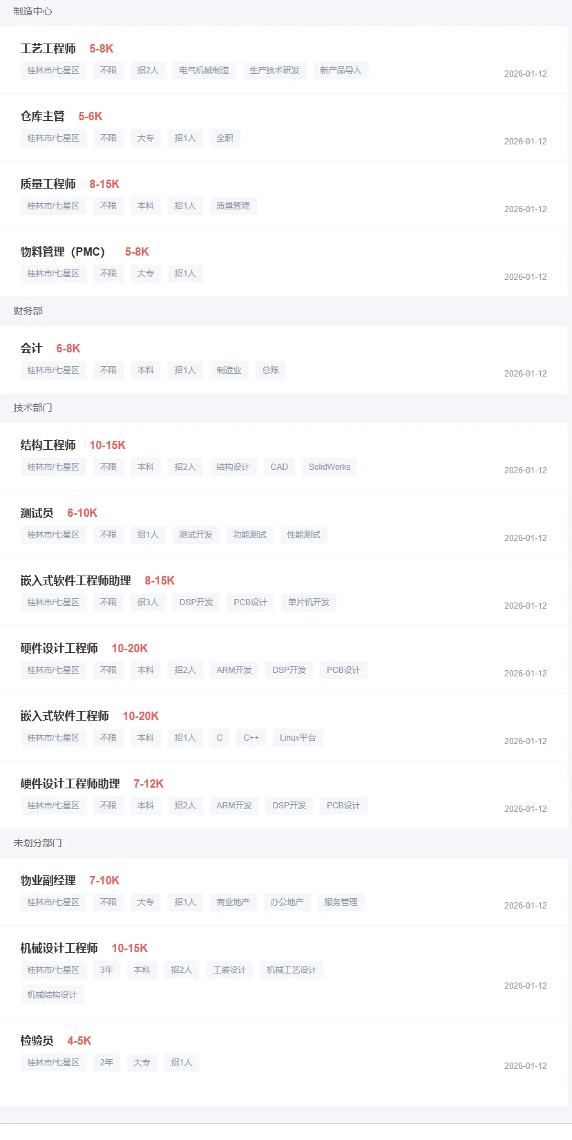 桂林星辰科技股份有限公司(星辰科技,证券代码:832885)是一家民营军工企业,是国内领先的军用随动控制总成和军品级伺服系统提供商,也是国内较早从事军用、民用伺服系统产品研发与产业化的企业。为航空航天及军工、新能源以及工业自动化领域提供各类高端伺服控制系统。公司集随动控制总成、伺服驱动器、伺服电机等装备自动化及智能化产品的研发、生产、销售、服务于一体,既可满足批量供货,也可快速响应个性化定制。在招职位